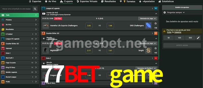 O 77bet game oferece uma grande seleção de opções de apostas em e-sports com probabilidades competitivas